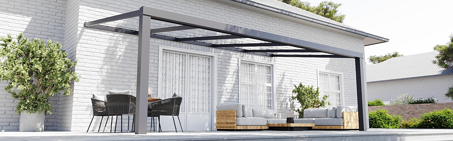Das Optimum-Modell ist die perfekte Lösung für alle, die ein schlichtes und zugleich elegantes Überdachungssystem bevorzugen. Das Dach kann je nach Wunsch mit klarem oder satiniertem Polycarbonat sowie mit Klarglas ausgestattet werden. Darüber hinaus können Sie frei wählen, welche Seite mit Glas verkleidet werden soll. Die Pfosten sind schlank gestaltet und verleihen der Konstruktion durch ihr charakteristisches Design eine moderne Note.